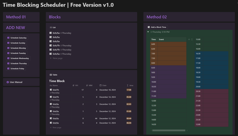 Transform the way you manage your day with our Time Blocking Template in Notion. Get started today and take control of your time, one block at a time!