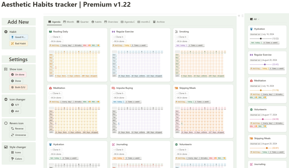- Purpose: Comprehensive habit tracking with enhanced aesthetics and advanced features.